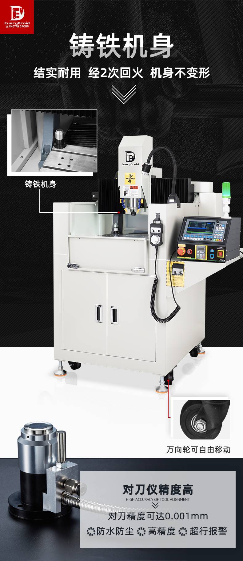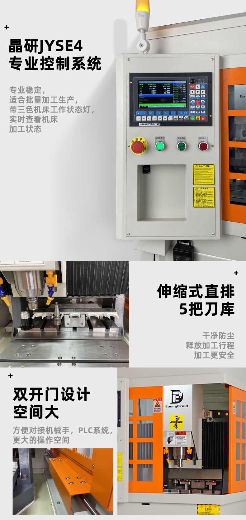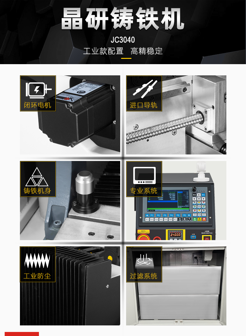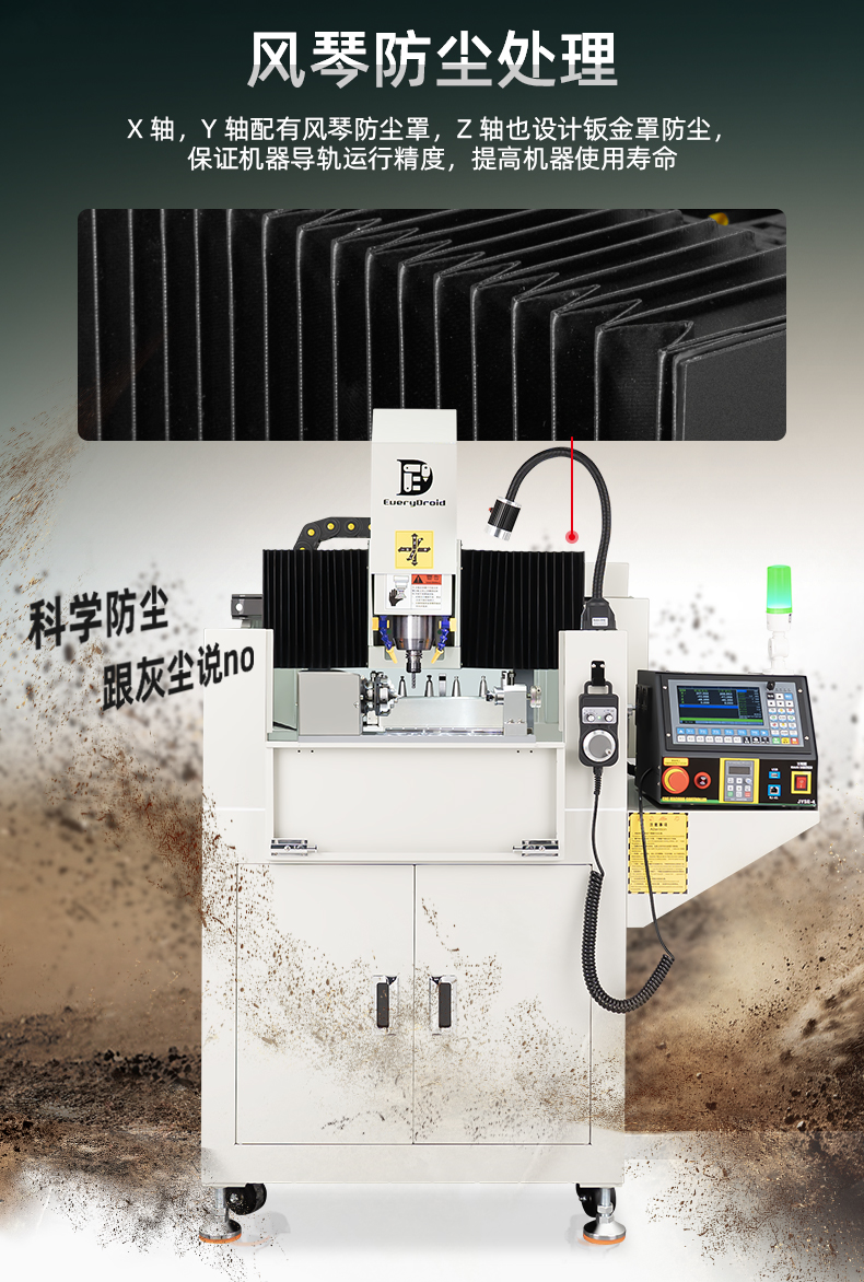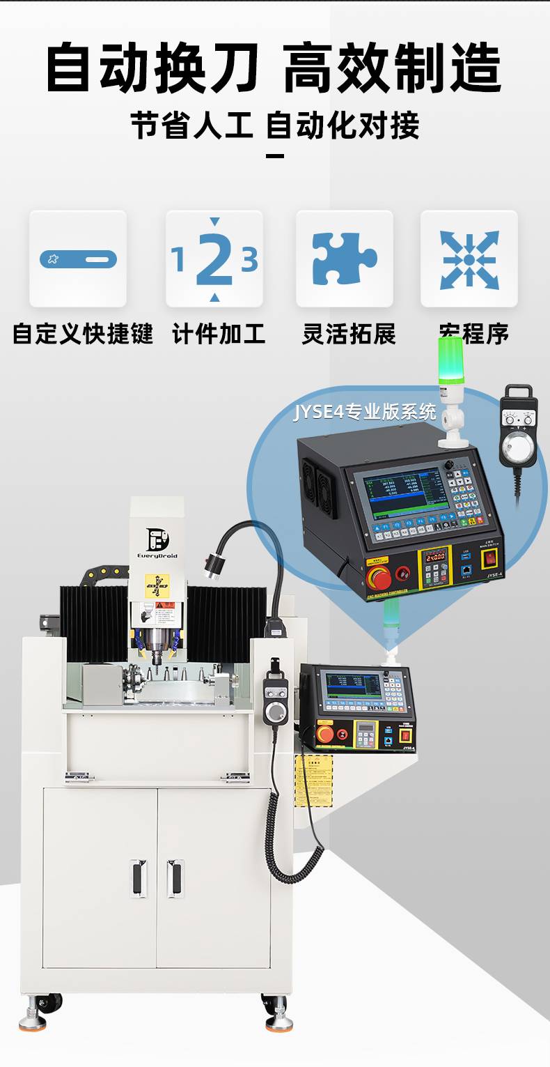 500505百万文字论坛转载各坛-500505百万论坛最新更新内容-500608百万文字论坛白手起家-新500507百万文字论坛-500505百万文字论坛-500505百万文字论坛-百万文字转载各坛论文500608V系列自动换刀铸铁精雕机是一款高效、稳定、多功能的设备,具备专业过滤系统、自动换刀、4把刀库和高转速主轴等特点。它适用于多种材料加工,满足不同行业需求,如45#钢鞋模、模具制造、金属和铝合金零件加工、紫铜电极加工等精密任务。新升级的JC3040-JYSE4型号强调高精度和稳定性,提供多重配置和立体加工的高效性能,设备配备闭环电机、风琴防尘处理和高防水性模具主轴,确保长时间稳定运行。JYSE4控制系统支持断电续雕和跳行加工,进一步提升加工效率。