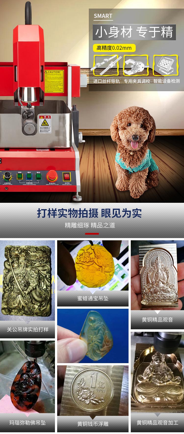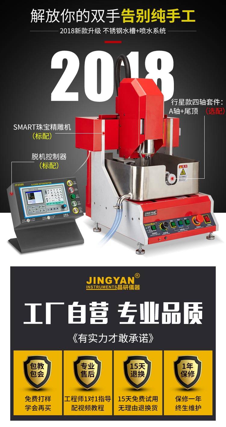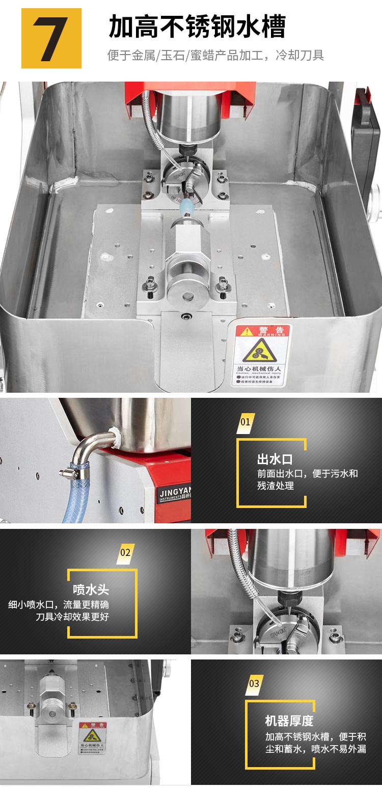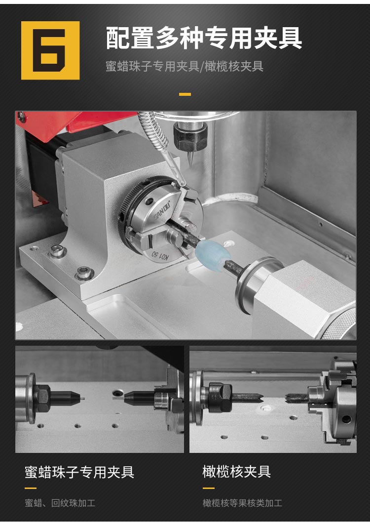 珠寶雕刻機主要針對住珠寶玉石加工行業研製,主要加工蜜蠟浮雕,玉石吊墜,回紋珠,琥珀製品,戒指刻字,手鐲花紋雕刻等用途,專業款配置,小巧占地少,專為珠寶行業精細加工。
