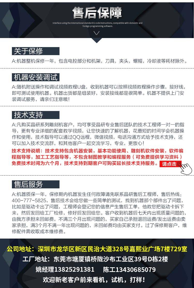 1、整体性能出厂都严格经过设备检测,出货都有检测报告; 2、机器外观改进,三轴承设计,机型性能更加稳定; 3、整机机架铝合金材质经过拉丝表面处理,更加彰显品质; 4、控制器新增自检功能,所有问题轻松解决!