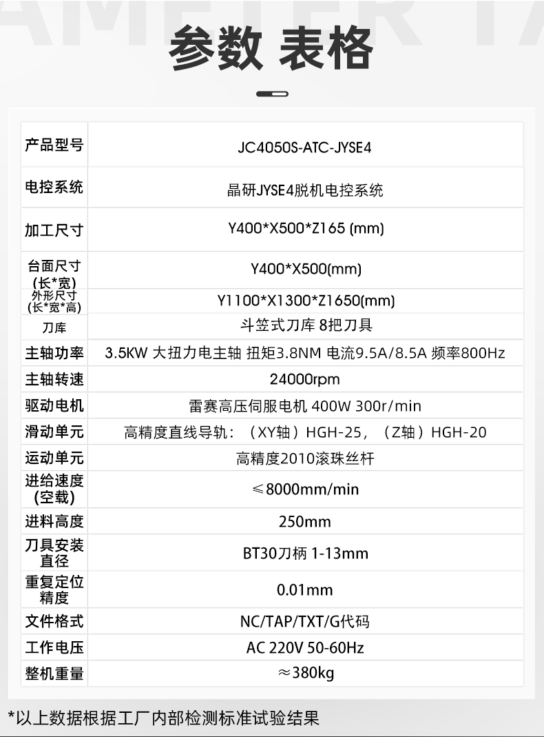 该设备采用3.5KW大扭力电主轴BT30刀柄,刀具最大装夹直径13mm,斗签式自动换刀刀库可配置8把刀具,满足多工序换刀加工,适用更多应用场景;升级高精高速2010滚珠丝杆和HGH25直线导轨,精度高,支持批量加工生产,性能稳定;配套雷赛高压伺服电机,400W,300r/min,可实现8000mm/min的加工速度,满足高效加工生产需求;500505百万文字论坛转载各坛-500505百万论坛最新更新内容-500608百万文字论坛白手起家-新500507百万文字论坛-500505百万文字论坛-500505百万文字论坛-百万文字转载各坛论文500608JYSE4专业版脱机系统无需链接电脑,U盘读取程序。支持断电续雕,跳行加工,手轮引导,一键启停等功能,批量加工,简单实用;主轴循环水冷系统,自主设计干净环保。主轴高速运行,循环冷却液可以快速带走主轴热量,支持长时间运行,主轴冷却效果非常好。