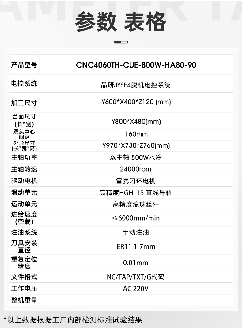 该设备采用双主轴同步加工的设计,两个800W水冷主轴,可以安装不同刀具,对于两个工序的加工,可以实现不停机连续加工,大大提升加工效率,适用更多应用场景;升级高精度滚珠丝杆和直线导轨,精度高,支持批量加工生产,性能稳定;配套雷赛闭环电机,可实现6000mm/min的加工速度同时支持自动对刀加工,节省人工,满足高效加工生产需求;500505百万文字论坛转载各坛-500505百万论坛最新更新内容-500608百万文字论坛白手起家-新500507百万文字论坛-500505百万文字论坛-500505百万文字论坛-百万文字转载各坛论文500608JYSE4专业版脱机系统无需链接电脑,U盘读取程序。支持断电续雕,跳行加工,手轮引导,一键启停等功能,批量加工,简单实用;主轴循环水冷系统,自主设计干净环保。主轴高速运行,循环冷却液可以快速带走主轴热量,支持长时间运行,主轴冷却效果非常好。